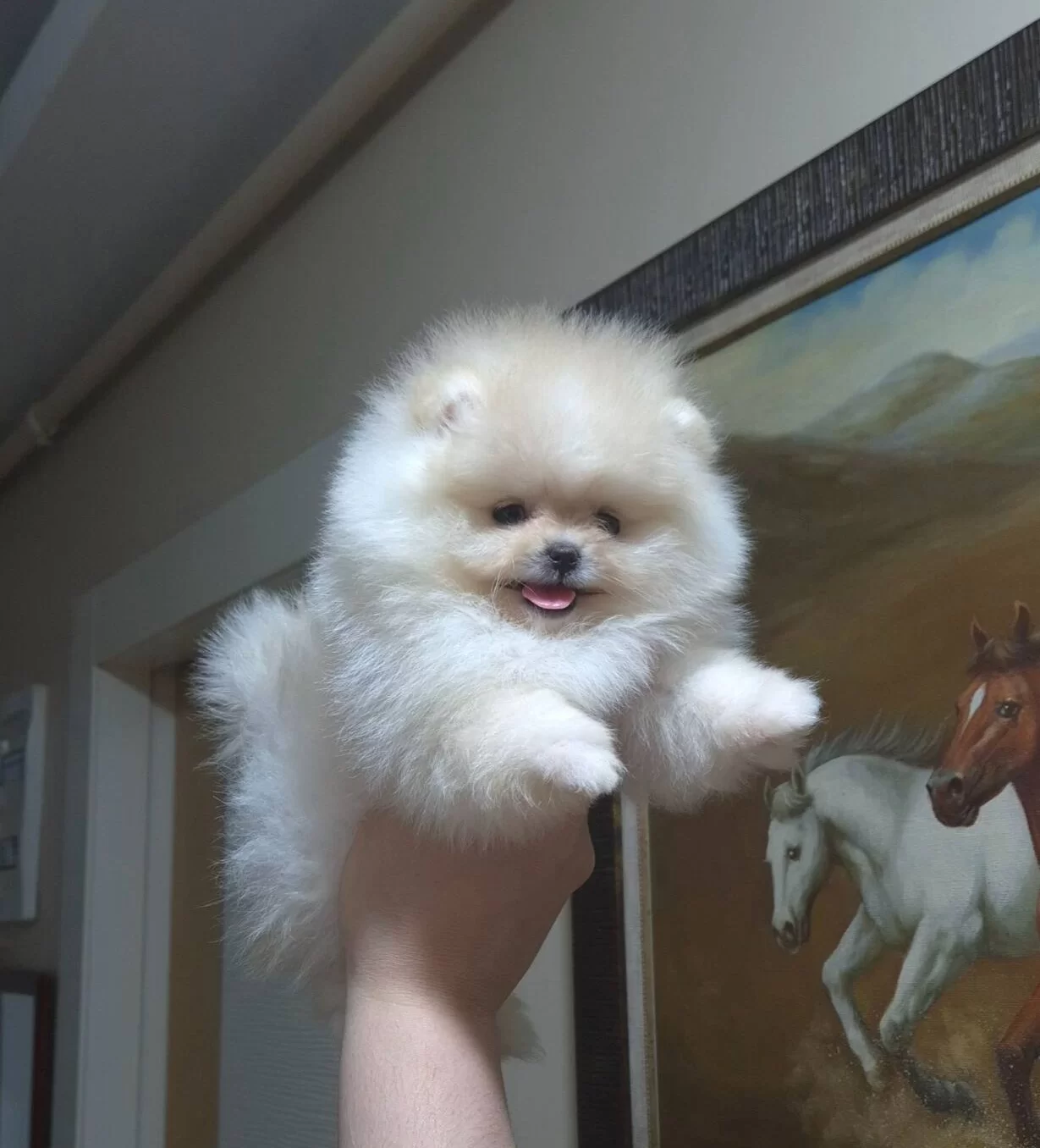 Pamuksu beyazlığı ve minicik patileriyle gerçek bir prenses edasında olan 2.5 aylık Teacup Pomeranian Boo. İlk aşıları tamamlanmış, İzmir çıkışlı tüm illere güvenli gönderim imkanıyla bu minyatür dostumuz sosyal ortamlarda tüm bakışları üzerinize çekecek.